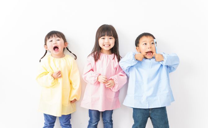 よく噛むことは、顎の骨や顔の筋肉をバランスよく成長させる大事な刺激です。噛まない習慣が続くと、顎の成長不足や歯並びの乱れ(出っ歯・開咬など)につながることがあります。