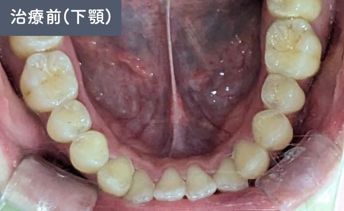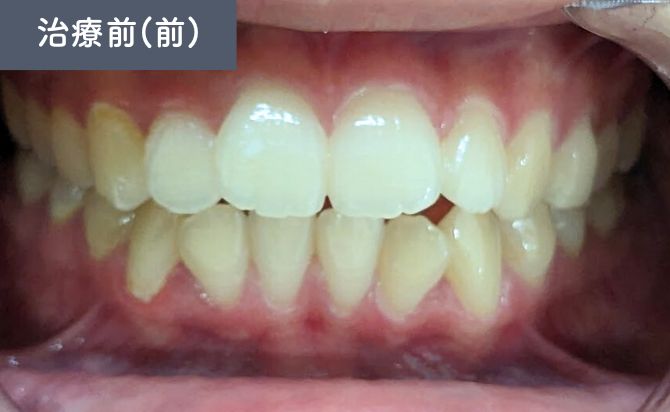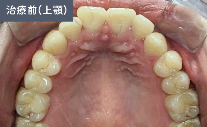 前歯の傾斜が強く、上唇の突出感にも影響していましたが、歯列全体のスペース不足は軽度であり、非抜歯での整列および前方位の改善が可能な状態 と判断しました。