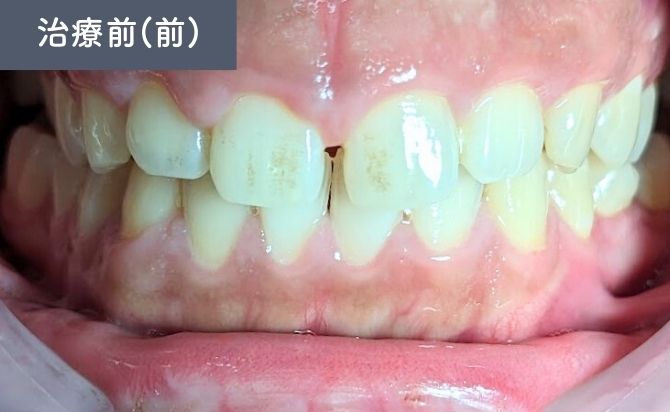診察では、上顎左右1番の間に明確な空隙(正中離開)が認められ、見た目の印象に影響している状態でした。