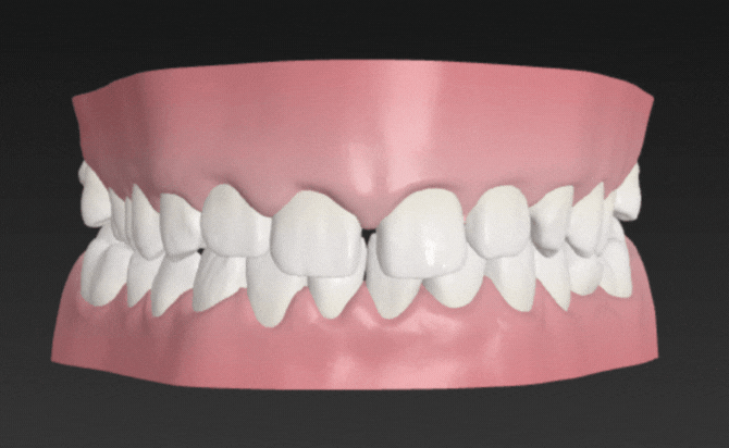 下顎前歯の叢生についても、アライナーによる配列調整を行い、上下の前歯の噛み合わせバランスを整えることを目標としています。