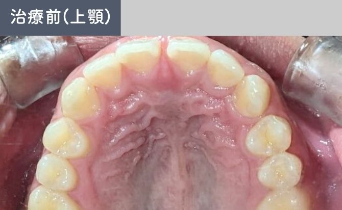 下顎前歯には軽度の叢生がみられ、上下ともに前歯部の配列に不整がある症例でした。