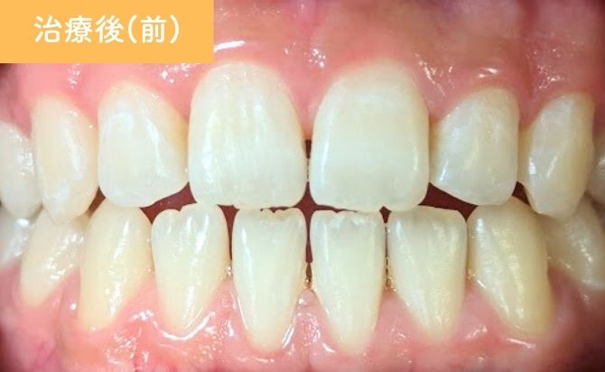 前歯部の見た目が大きく改善しただけでなく、噛み合わせも安定し、機能面・審美面の両立が図られた症例となりました。