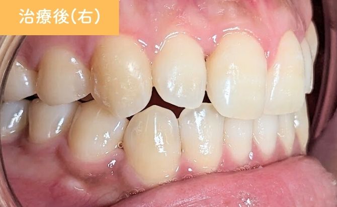 オープンバイトについても、前歯の位置関係が改善されることで噛み合わせが整い、治療計画の見直し(リテイク)を行うことなく予定通り治療が進行しています。