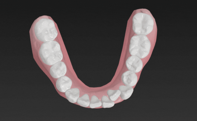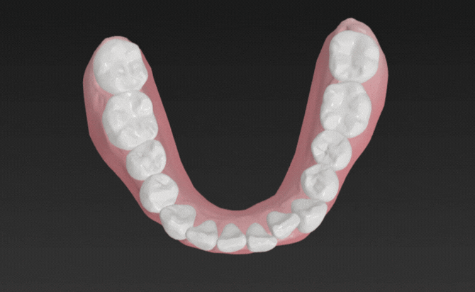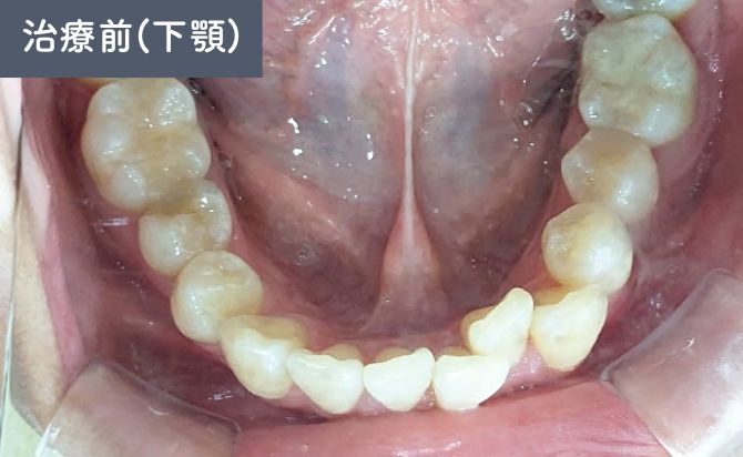その他の歯列には大きな叢生や咬合異常は認められませんでしたが、下顎の歯列弓が狭く歯が並びきっていない状態でした。