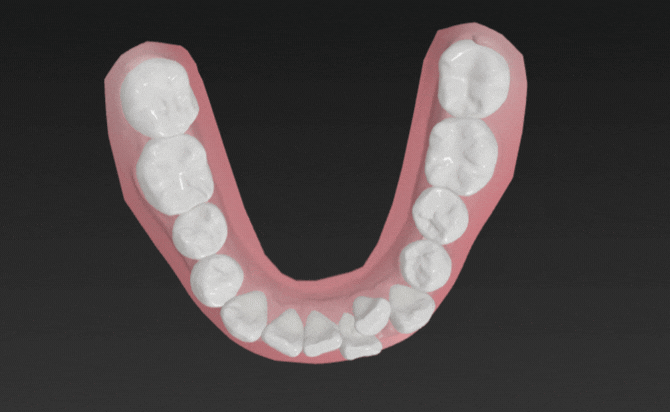 抜歯は行わず、アライナーを用いて歯列弓内にスペースを確保しながら、段階的に2番を正しい位置へ移動させる計画としています。